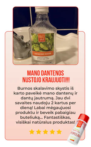 Pakeiskite savo burnos higieną naudodami Dūmų medžio Hydroliną – mūsų šeimos sukurtą burnos skalavimo skystį nuo blogo burnos kvapo, kraujavimo dantenų ir periodontito. Puikiai tinka visiems, turintiems dantenų problemų, blogo burnos kvapo, burnos diskomforto, opų ir aftų.