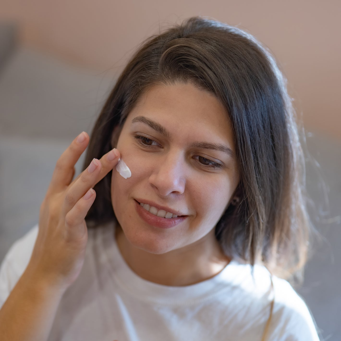 Švelniais, masažuojančiais judesiais užtepkite pakankamą kiekį kremo, kad atgaivintumėte odą ir padėtumėte kremui įsigerti.