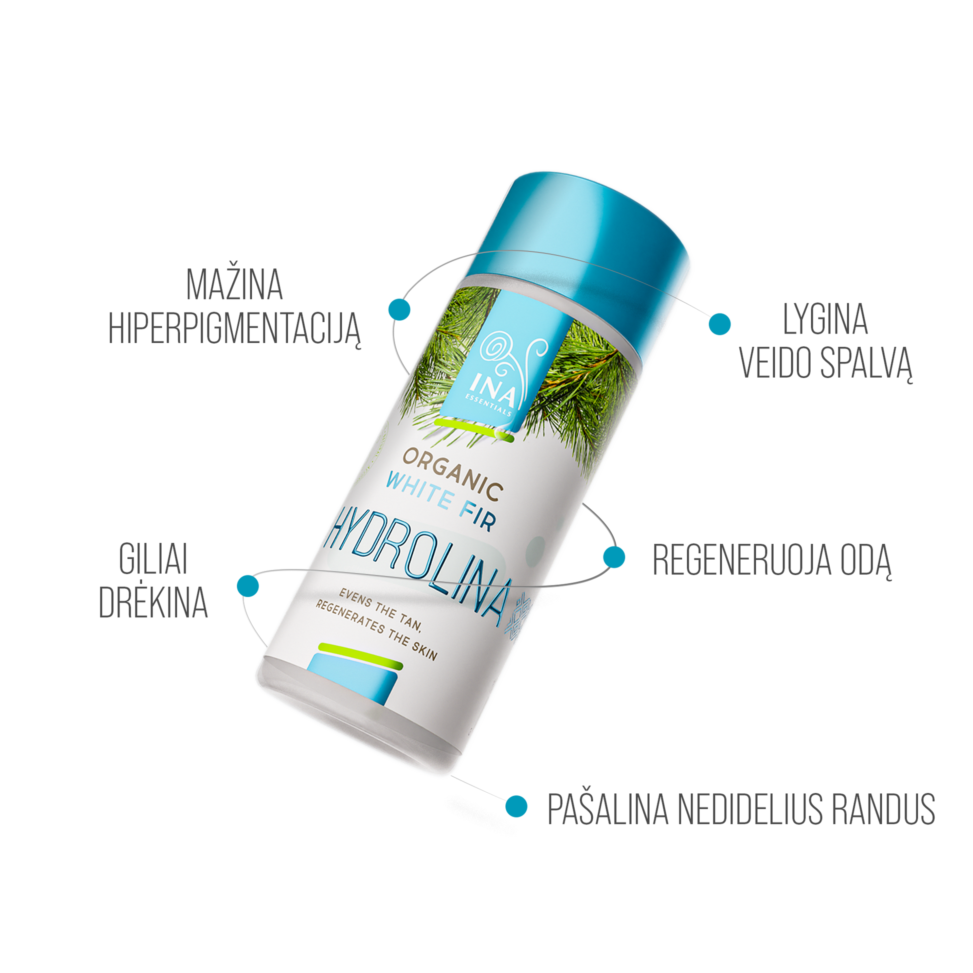 Baltųjų Eglių Hydrolina turi natūralų eglių vandens, kuriame gausu monoterpenų, tokių kaip alfa-pinenas ir limonenas, bei bornilo acetato, stiprumą. Šie biologiškai aktyvūs komponentai skatina gilų odos valymą, ramina sudirginimą, mažina raukšles ir smulkias raukšleles bei skatina sveikų ląstelių atsinaujinimą. Beta-pinenas ir delta-3-karenas dar labiau sustiprina baltosios eglės priešuždegiminį poveikį, mažina paraudimą ir uždegimą. Rezultatas – kruopščiai atgaivinta odą, sumažinta pigmentaciją ir randus atskleidžianti tolygiai švytinčią veido spalvą.