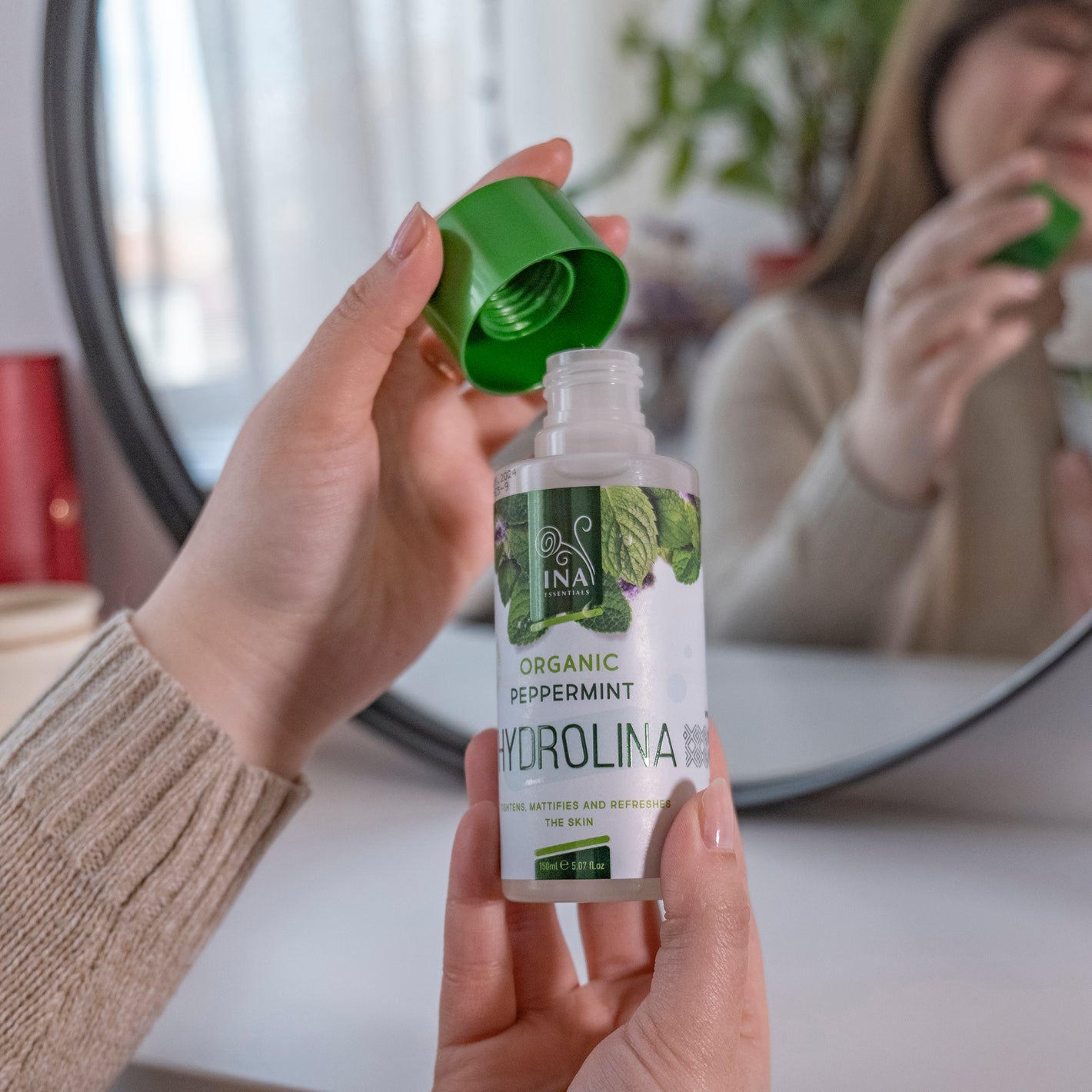 Ekologiška Pipirmėčių Hydrolina siūlo daugiau nei greitą pataisymą. Jis veikia prie šaknų, giliai išvalo poras ir reguliuoja riebalų perteklių, tuo pačiu drėkindama odą. Įrodyta, kad ji turi stiprių raminančių, matinių ir stangrinančių savybių, užtikrinančių ilgalaikį, jaunatvišką spindesį.