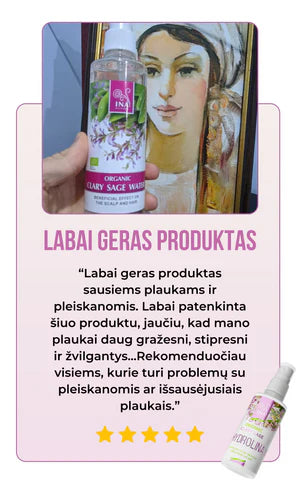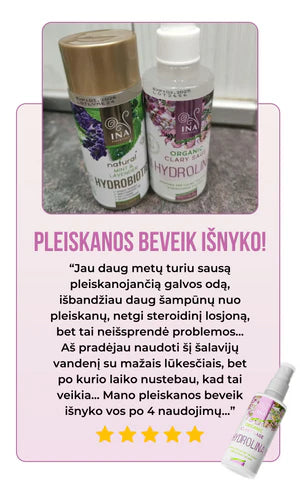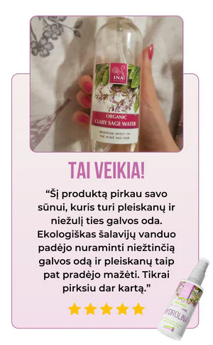 Patobulinkite savo plaukų priežiūrą su Ekologiška Šalavijų Hydrolina – mūsų šeimos sukurta priemonė nuo pleiskanų, seborėjos ir sudirgusios galvos odos. Puikiai tinka visų tipų galvos odai ir plaukams.