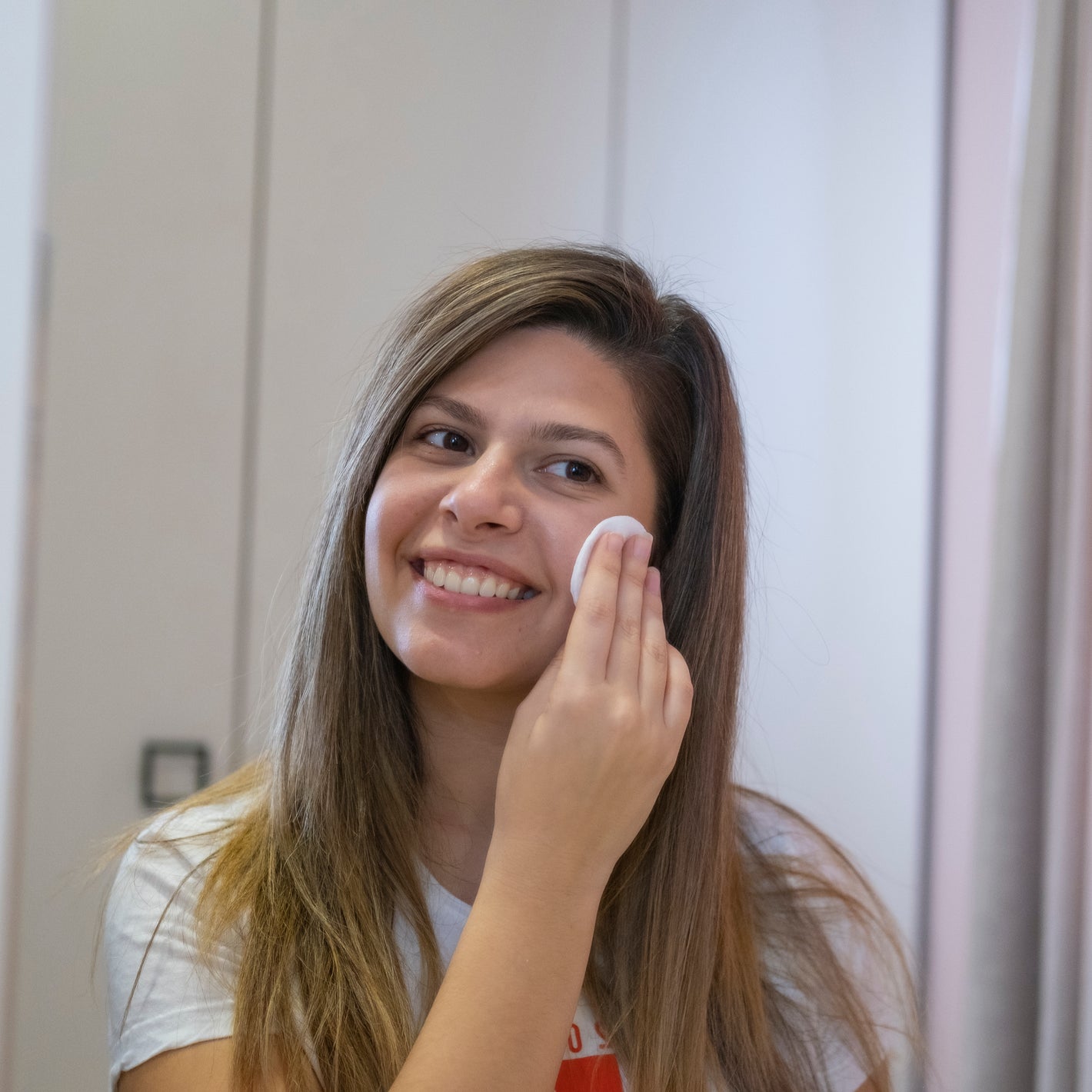 Sudrėkinkite dideliu kiekiu Hydrolinos vatos diską ir patepkite norimas odos vietas.