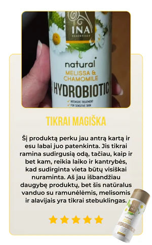 Mūsų Hydrobiotic– ramunėlių, melisų ir alavijų yra: