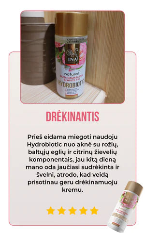 Hydrobiotic - rožių, baltųjų eglių ir citrinų žievelės ingredientai /INCI/: