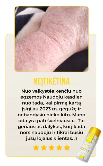 Vos per ketverius metus Ramunėlių Hydrolina tapo mėgstamiausiu natūraliu sprendimu nuo egzemų – visame pasaulyje pristatyta daugiau nei 100 000 buteliukų. Mes didžiuojamės žema grąžinimo norma (mažiau nei 1 %), tai patvirtina mūsų atsidavimą kokybei ir klientams.