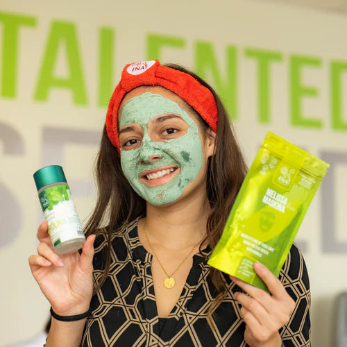 Sumaišykite 1 valgomąjį šaukštą miltelių su nedideliu kiekiu InaEssentials Melisų Hydrolinos, kol susidarys plona pasta.