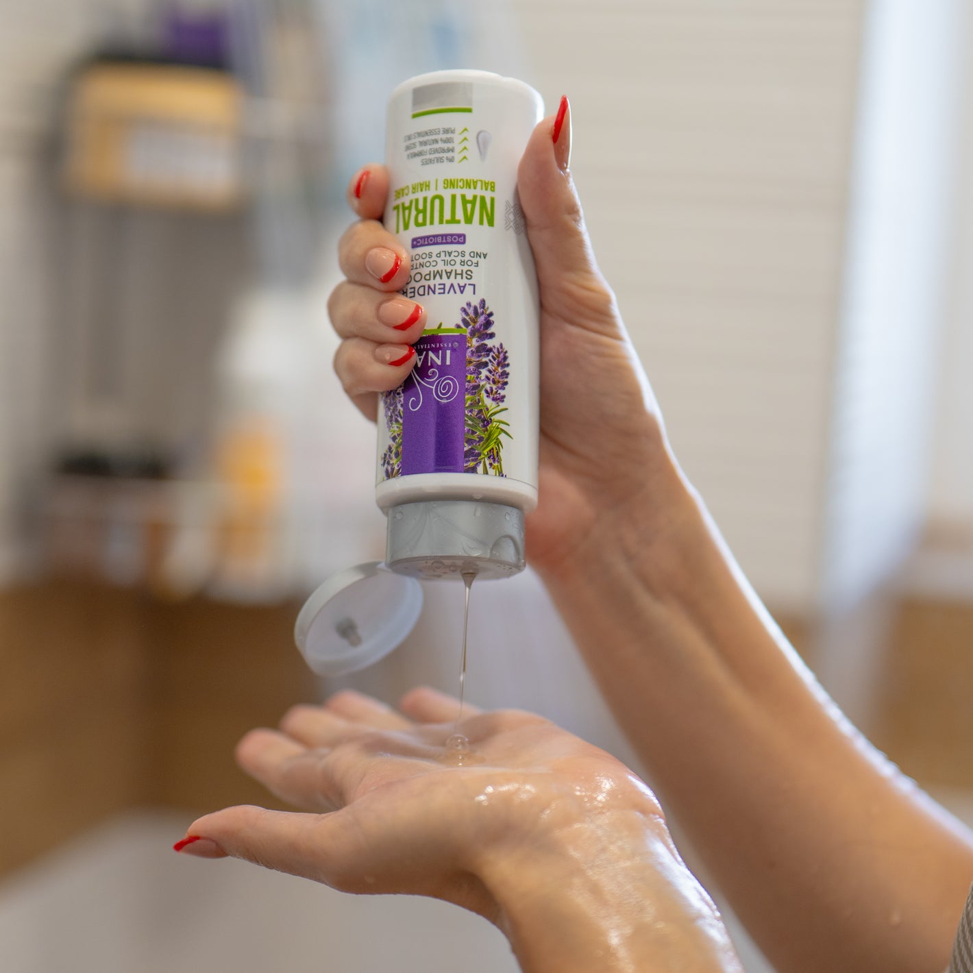 Natūralus levandų šampūnas yra nauja, patobulinta formulė, pagaminta iš natūralių ir ekologiškai sertifikuotų ingredientų. Jame sujungiamas organinis levandų aliejus ir levandų vanduo iš mūsų šeimos laukų, DefenScalp (Siauralapis gaurometis) ir Italijoje sukurtas Aloferm Hf Bio Cosmos (Italijoje sukurtas Aloe Vera postbiotikas), kad būtų užtikrintas gilus valymas.