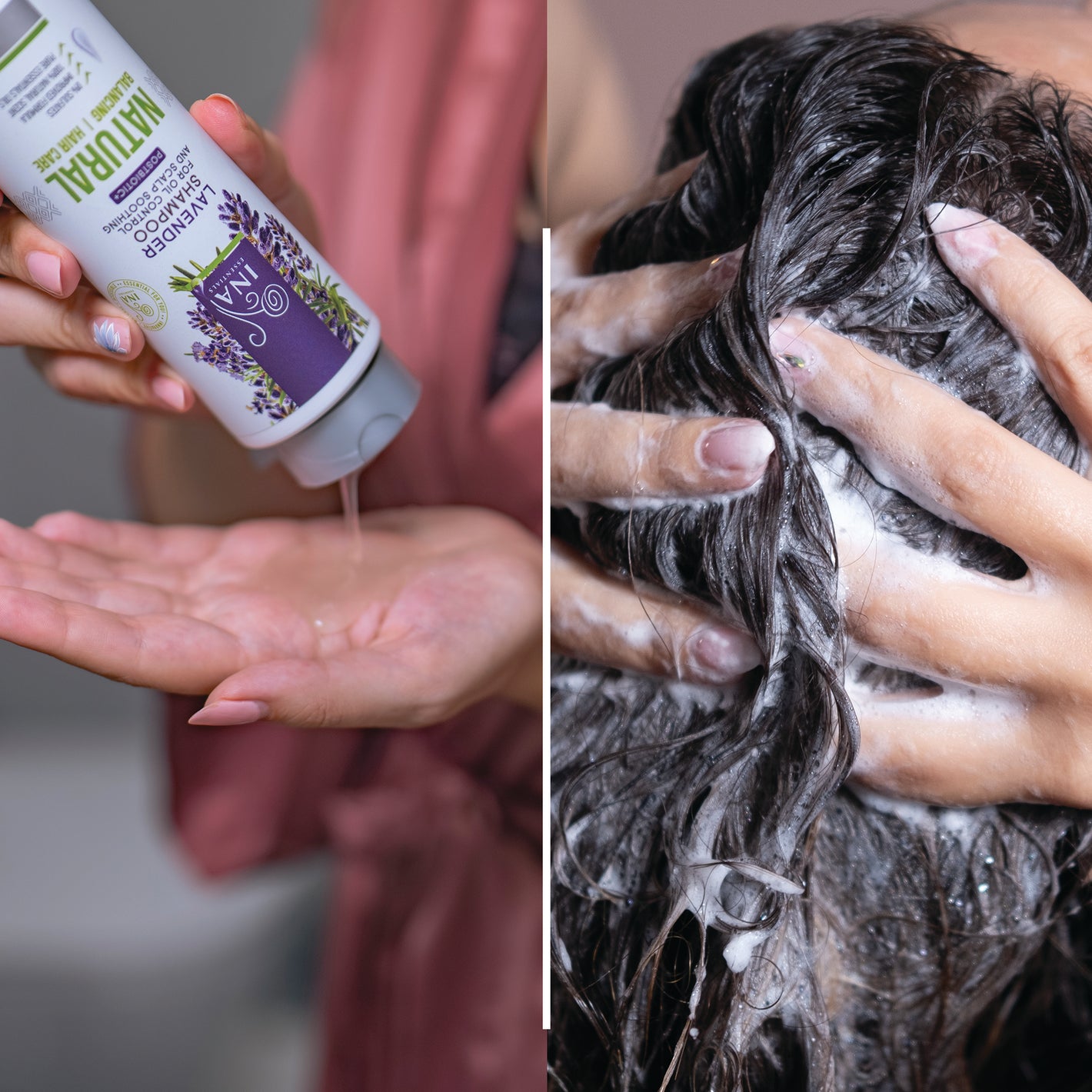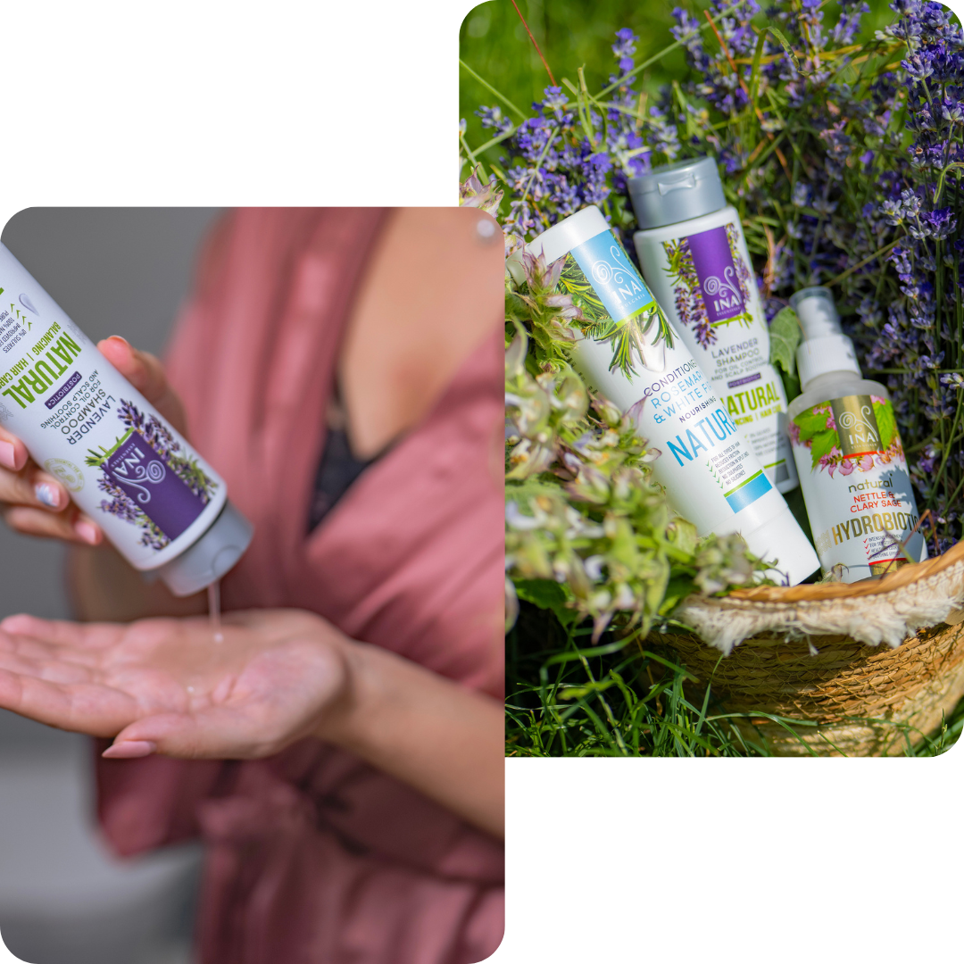 - 1 veiksmas: Norėdami nuplauti nešvarumus, pradėkite nuo galvos odos valymo mūsų nauju ir patobulintu natūraliu levandų šampūnu nuo pleiskanų, praturtintu Aloe postbiotiniu kompleksu – fermentuotu Aloe Vera ekstraktu. Jis ramina galvos odos sudirginimą ir apsaugo jūsų galvos odą nuo kenksmingų mikroorganizmų ir pleiskanas sukeliančių bakterijų, taip pagerindamas bendrą plaukų sveikatą.