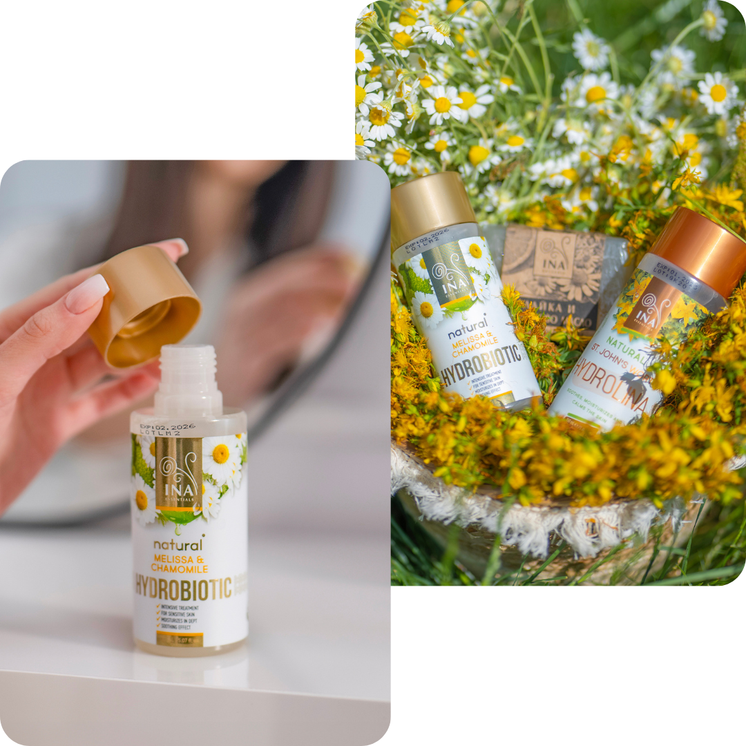 Sujungia ramunėlę ir melisą hidroliną su stipriu Aloe Vera postbiotikų kompleksu. Ramunė Hydrolina drėkina ir kovoja su odos sudirgimais, o Melissa Hydrolina ramina ir atstato. Naujoviškas alavijo kompleksas sustiprina jų poveikį, suteikdamas stiprią apsaugą nuo kenksmingų mikroorganizmų.