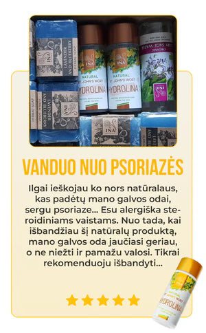 - Laukinės Jonažolės vanduo - Hydrolina nuo Psoriazės ir Sudirgusios odos (150 ml),
