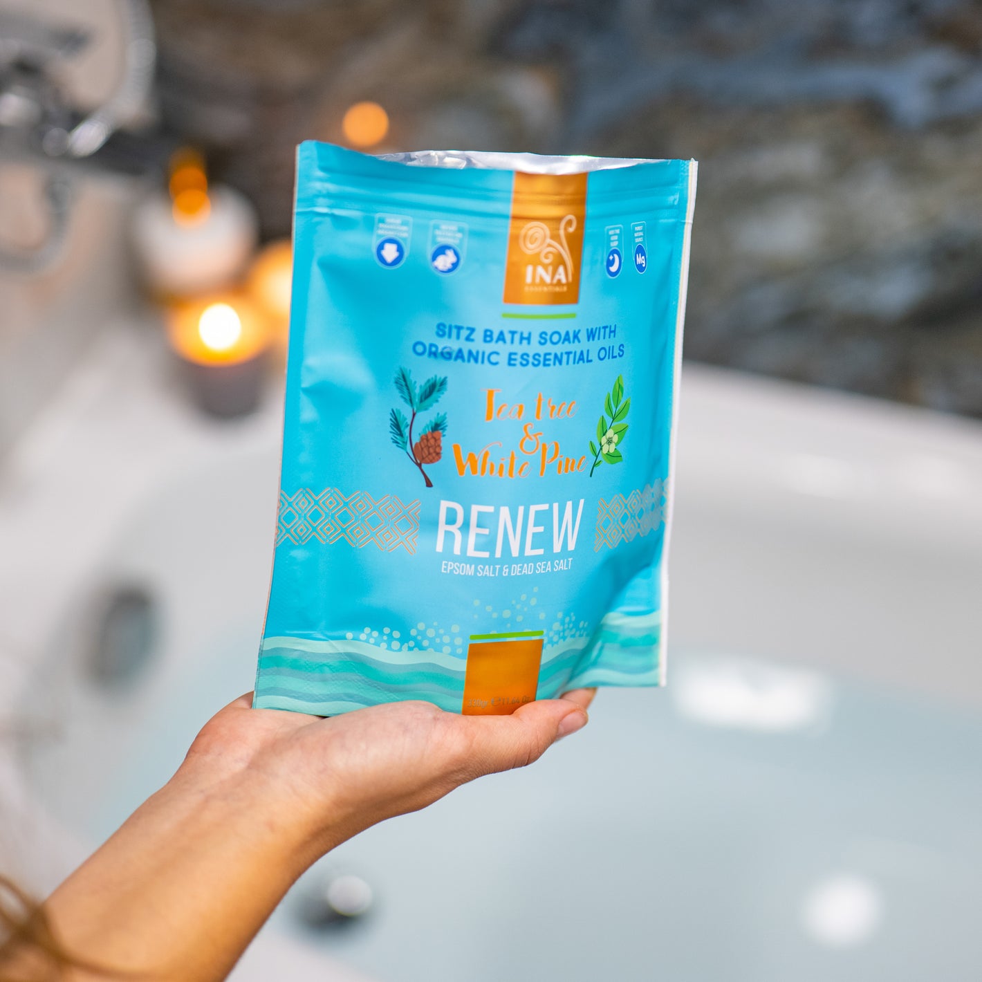 Renew vonios druskos yra sukurtos iš natūralių ingredientų pėdų sveikatai. Arbatmedžio ir baltosios pušies eteriniuose aliejuose yra didelė maistinių medžiagų koncentracija, kuri išgaunama iš augalų. Epsom druskos ir Negyvosios jūros druskos derinys yra idealus būdas prižiūrėti pėdų odą.